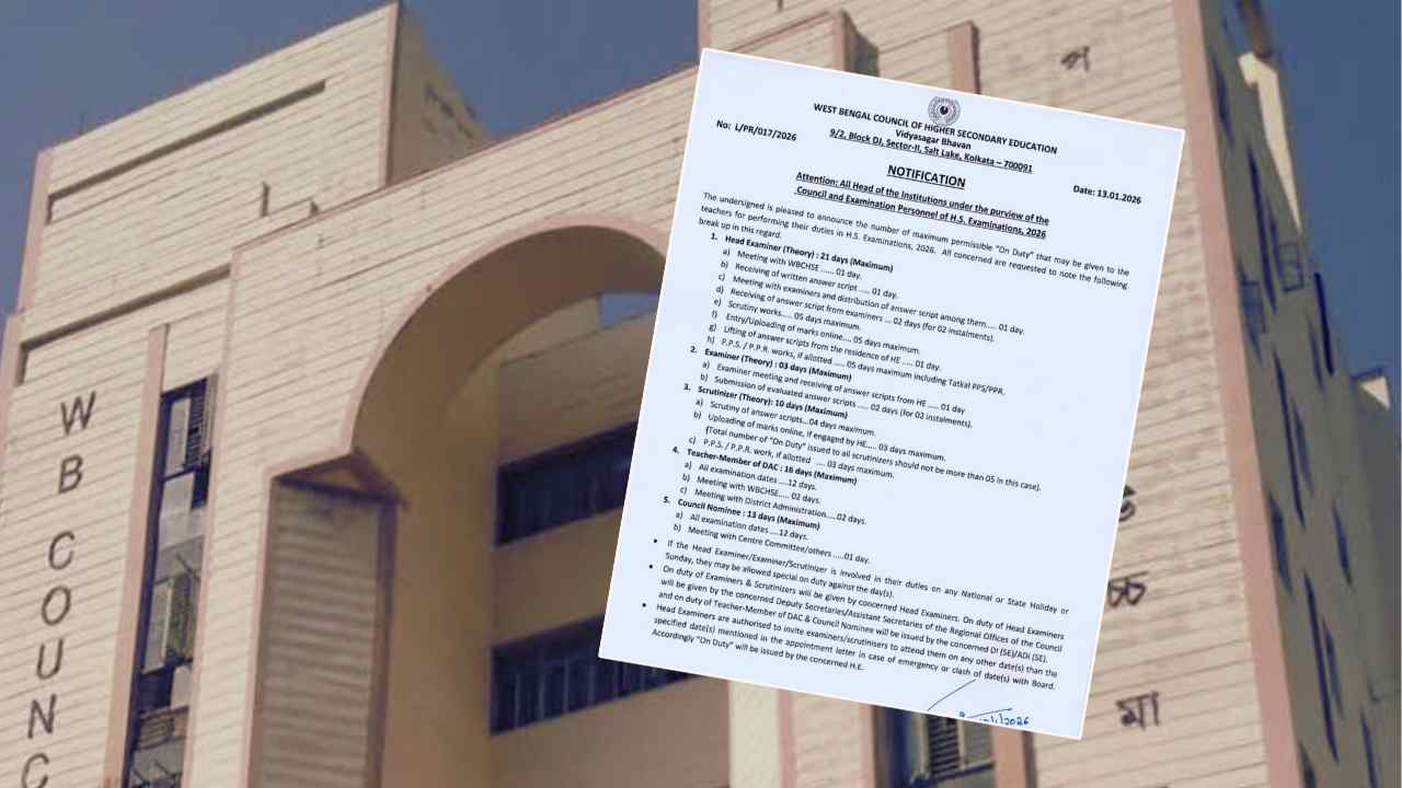 প্রীতি পোদ্দার, কলকাতা: সামনেই যেহেতু ২৬ এর বিধানসভা নির্বাচন, তাই তড়িঘড়ি কাজ মেটাতে SIR শুনানি নিয়ে বেশ মনোযোগ দিয়েছে নির্বাচন কমিশন। এদিকে কাজের চাপে প্রায় নাওয়া খাওয়া ভুলে ভোটার তালিকা নিবিড় সংশোধনের কাজ করেই চলেছে স্কুল শিক্ষকদের একাংশ। এদিকে আগামী ১২ ফেব্রুয়ারি থেকে শুরু হতে চলেছে উচ্চ মাধ্যমিক। সেক্ষেত্রে আরও এক বাড়তি চাপ হতে চলেছে। এমতাবস্থায় বড় স্বস্তি দিল উচ্চ মাধ্যমিক শিক্ষা সংসদ (WBCHSE)। পরীক্ষায় শিক্ষকেরা কে কত ক্ষণ কাজ করবেন তা এবার স্থির করে দিল সংসদ। জানা গিয়েছে, অতিরিক্ত বা অনিয়মিত কাজের অভিযোগ যাতে না ওঠে, সে জন্যই এই সিদ্ধান্ত নেওয়া হয়েছে বলে জানানো হয়েছে মাধ্যমিক শিক্ষা সংসদের তরফে।