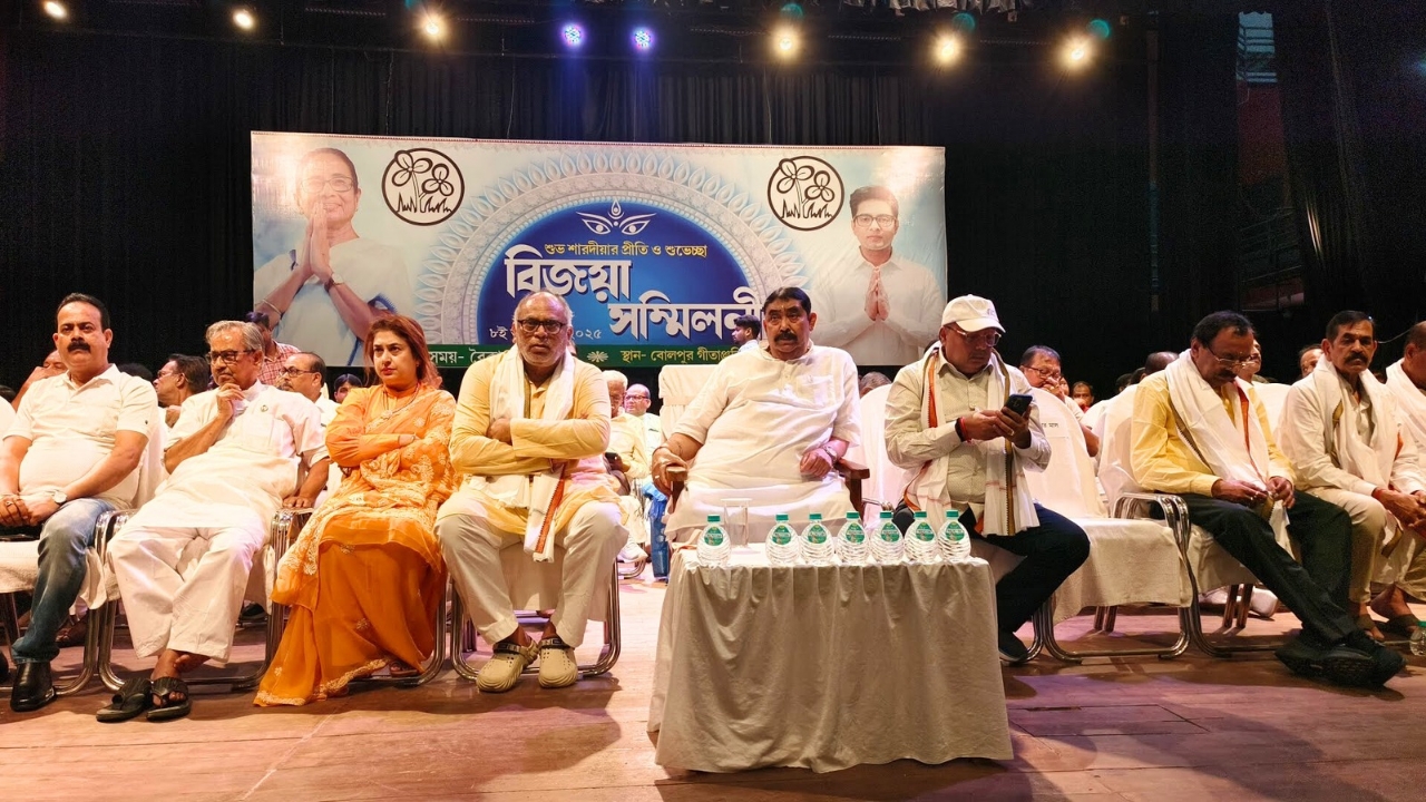 গতকাল অর্থাৎ বুধবার, মুখ্যমন্ত্রী মমতা বন্দ্যোপাধ্যায় এবং বীরভূম জেলার কোর কমিটির সিদ্ধান্ত অনুযায়ী বোলপুরের গীতাঞ্জলি প্রেক্ষাগৃহে বিজয়া সম্মেলনী অনুষ্ঠানের আয়োজন করা হয়েছিল। অনুষ্ঠানে উপস্থিত ছিলেন অনুব্রত মণ্ডল, রাজ্যের কারামন্ত্রী চন্দ্রনাথ সিংহ, বিধানসভার উপাধ্যক্ষ আশিস বন্দ্যোপাধ্যায়, বীরভূমের সাংসদ শতাব্দী রায়, বোলপুরের সাংসদ অসিত মাল-সহ কোর কমিটির ৯ সদস্য। এছাড়াও বিজয়া সম্মেলনীতে বীরভূমের অন্যান্য এলাকার বিধায়ক, ব্লক সভাপতি, পুরসভাগুলির চেয়ারম্যান, অঞ্চল সভাপতি, পঞ্চায়েত সমিতি, জেলা পরিষদের সদস্যরা-সহ গ্রাম পঞ্চায়েতের প্রধানরা উপস্থিত ছিলেন ৷ তবে এদিনের অনুষ্ঠানে ছিলেন না কাজল শেখ৷ জানা গিয়েছে, পারিবারিক কাজে ব্যস্ত থাকায় উপস্থিত থাকতে পারেনি এদিন।