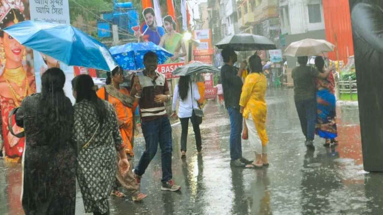 আলিপুর আবহাওয়া দপ্তরের বুলেটিন অনুযায়ী আজও রয়েছে বৃষ্টির দাপট। গতকাল অষ্টমীর সকালের দিকে রোদ ঝলমলেই ছিল আবহাওয়া। কিন্তু বেলা গড়াতেই আকাশে গুমোট ভাব দেখা যায়। দুপুরের দিকে শহরের কোনো কোনো এলাকায় বিক্ষিপ্ত বৃষ্টি হয়েছিল। তবে প্যান্ডেল হপিং করার ক্ষেত্রে কোনো অসুবিধা হয়নি। কিন্তু আজ শহরে ভারী বৃষ্টির সম্ভাবনা রয়েছে। শুধু কলকাতাই নয়, দক্ষিণবঙ্গের বাকি জেলাগুলিতেও বৃষ্টির পূর্বাভাস রয়েছে। হুগলি, দুই ২৪ পরগনা, দুই মেদিনীপুর, দুই বর্ধমান, বীরভূম, মুর্শিদাবাদ এবং নদিয়ায় ভারী বৃষ্টির সম্ভাবনা রয়েছে। আগামীকাল অর্থাৎ দশমীতে ভারী থেকে অতিভারী বৃষ্টি হওয়ার কথা উপকূল সংলগ্ন দুই মেদিনীপুর, দক্ষিণ ২৪ পরগনা এবং হাওড়ায়।