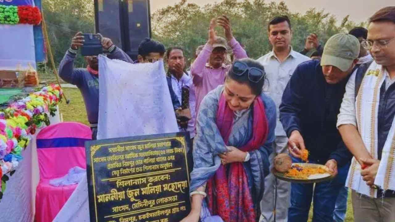 রিপোর্ট মোতাবেক গতকাল অর্থাৎ সোমবার, পশ্চিম মেদিনীপুরের দাঁতনের চকইসমাইলপুর গ্রাম পঞ্চায়েতের চোরপালিয়া গ্রামে নতুন সেতুর শিলান্যাস উদ্বোধনের জন্য অনুষ্ঠানের আয়োজন করা হয়েছিল। সেই অনুষ্ঠানে আমন্ত্রিত ছিলেন তারকা সাংসদ জুন মালিয়া। সেখানেই তাঁকে দেখা গেল, শিলান্যাসের জায়গায় ইট পেতে, নিজের হাতে সিমেন্টে লেপে দিতে। এই প্রসঙ্গে তিনি বলেন, “ গ্রামবাসীদের জন্য নতুন সেতু এমনভাবে তৈরি করা হবে যাতে অ্যাম্বুল্যান্সও সহজে যেতে পারে। সেতুটি আগের তুলনায় আরও চওড়া করা হচ্ছে।” স্থানীয় গ্রাম পঞ্চায়েত প্রধান বিপ্লব ঘোড়াই-জানিয়েছেন কাজের অগ্রগতির উপর ভিত্তি করে, আগামী বছরের বর্ষার আগেই এই সেতুটির নির্মাণ সম্পূর্ণ হবে বলে মনে হচ্ছে