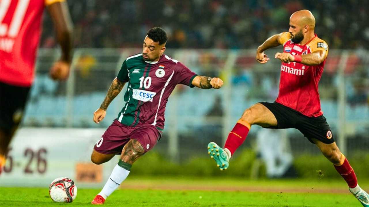 বিক্রম ব্যানার্জী, কলকাতা: এ মরসুমের আরও একটা ডার্বি দেখল যুবভারতী। শনিবারের মোহন বনাম ইস্টের লড়াইয়ে জিতল আক্রমণাত্মক ফুটবল। যদিও ম্যাচের ফলাফলে শেষ হাসি হাসলো মোহনবাগান। 90 মিনিটের খেলায় ড্র নিয়ে অতিরিক্ত সময়ে পৌঁছেছিল ম্যাচ (East Bengal Vs Mohun Bagan)। সেখানে সুরাহা না হওয়ায় শুরু হয়েছিল টাইব্রেকার। আর তাতেই নিজেদের ভাগ্য ফেরালো সবুজ মেরুন। প্রতিবেশীর জয়ে হ্যাটট্রিক হাতছাড়া হল ইস্টবেঙ্গলের।