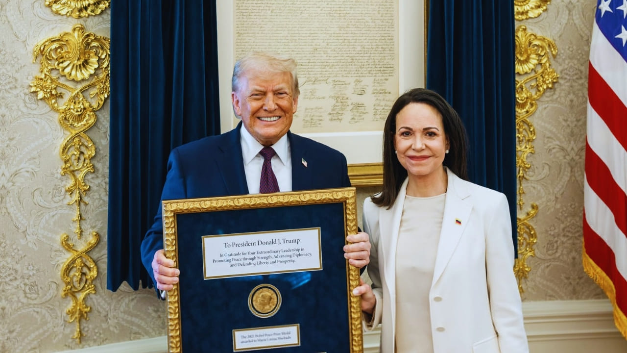 হোয়াইট হাউস থেকে বের হওয়ার পর ভেনেজুয়েলার বিরোধী নেত্রী মারিয়া কোরিনা মাচাদো বাইরে দাঁড়িয়ে থাকা তাঁর সমর্থকদের সঙ্গে কথা বলেন। তিনি বলেন, ‘আমরা রাষ্ট্রপতি ট্রাম্পের উপর ভরসা করতে পারি।’ এর উত্তরে সমর্থকরা ‘থ্যাঙ্ক ইউ ট্রাম্প’ স্লোগান দেন। অন্যদিকে সংবাদমাধ্যমে কোরিনা মাচাদো জানিয়েছিলেন যে তিনি ট্রাম্পকে নিজের পাওয়া নোবেল শান্তি পুরস্কারের মেডেলটি দিয়েছেন। এই মেডেল-দান করাকে মাচাদো ‘আমাদের স্বাধীনতার জন্য তাঁর বিশেষ সমর্থনের স্বীকৃতি’ হিসাবে বর্ণনা করেছেন। এছাড়াও হোয়াইট হাউজ থেকে বেরনোর সময় হাতে গিফটের ব্যাগ দেখা যায় মাচাদোর। সেই ব্যাগে লেখা ছিল ট্রাম্পের নাম। ছিল প্রেসিডেন্টের সই।