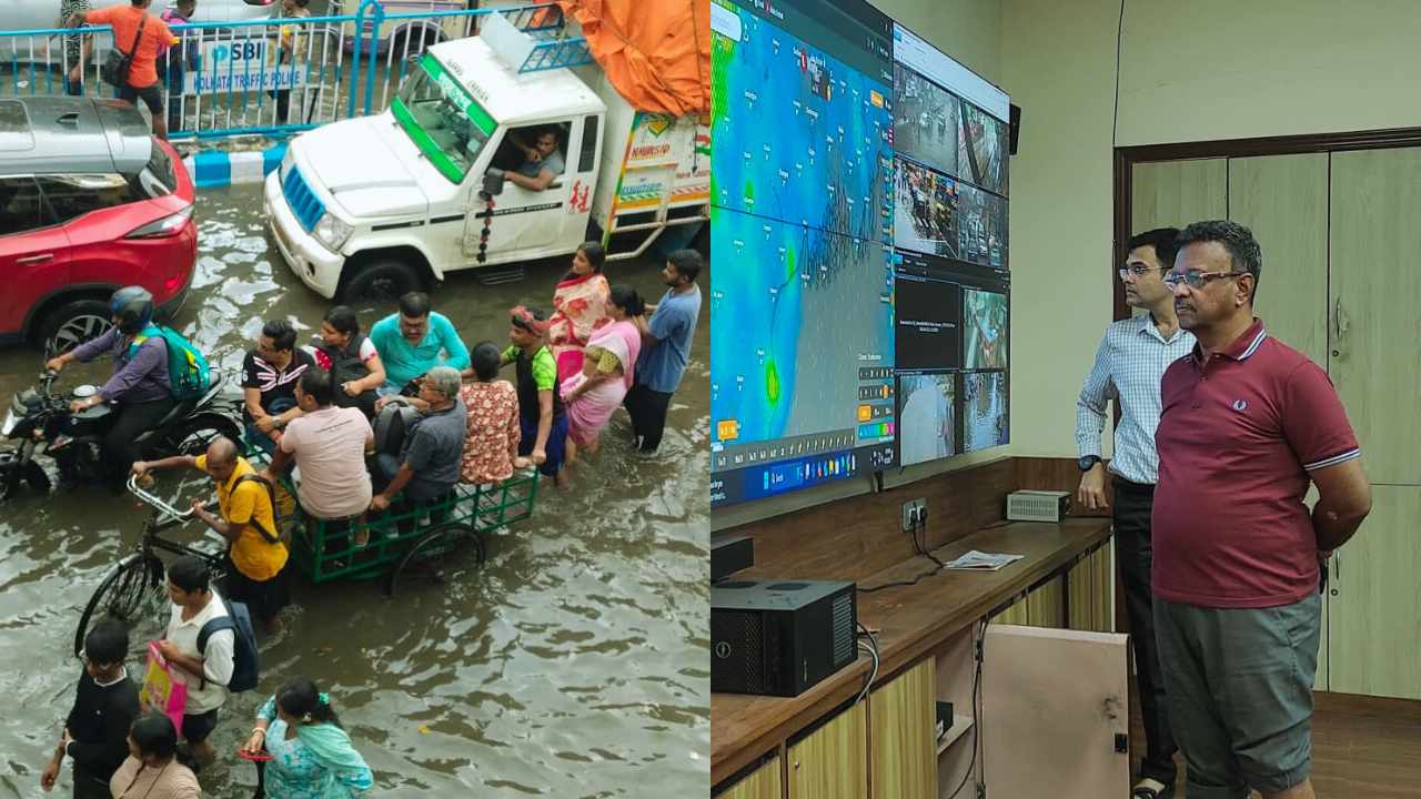 পুজোর আর হাতে গোনা কয়েকটা দিন। তার আগেই এইরূপ বৃষ্টির এমন রূপ দেখে সকলেই বেশ চিন্তিত। কলকাতা শহরের নিচু এলাকা তো বটেই, যে সমস্ত এলাকায় সচরাচর জল জমে না, সেগুলিও এখন জলের তলায়। বহু এলাকায় জমা জলের কারণে বিদ্যুৎ সংযোগ বন্ধ নিজেরাই বন্ধ করে দিয়েছেন স্থানীয় বাসিন্দারা। রাস্তায় বা গ্যারাজে দাঁড় করানো গাড়ির ভিতরে জল ঢুকেছে। অনেকে রাতেই বিভিন্ন এলাকার বাসিন্দারা নিচু এলাকার লোকজনকে সাহায্য করতে বেরিয়ে পড়েছিলেন। কোথাও তাঁরা গাড়ি ঠেলে উঁচু জায়গায় তুলেছেন। কোথাও বিপন্ন এবং জলবন্দি মানুষকে নিরাপদ আশ্রয়ে পৌঁছে দিয়েছেন। এই পরিস্থিতির মধ্যে কলকাতা পুরসভার কন্ট্রোল রুমে পৌঁছলেন মেয়র ফিরহাদ হাকিম।