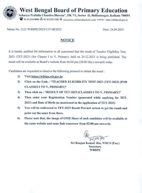 প্রকাশিত হল TET 2023-এর ফলাফল
