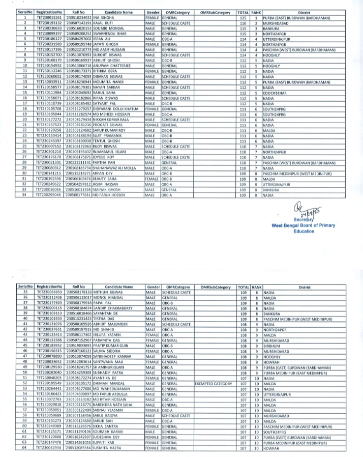 এক নজরে দেখুন ২০২৩ সালের প্রাথমিক টেটের মেধাতালিকা