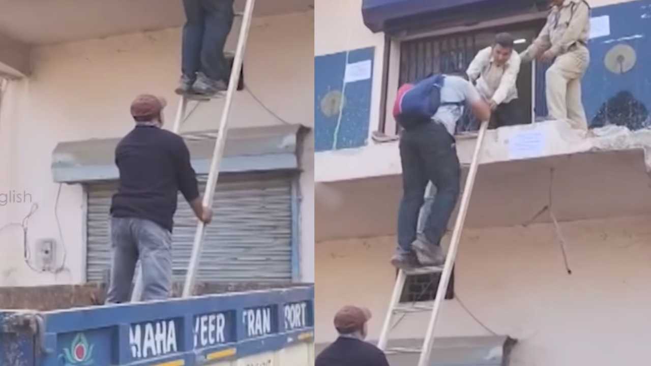 সম্প্রতি সোশ্যাল মিডিয়ায় ভাইরাল হওয়া ভিডিওটিতে দেখা গিয়েছে, ওড়িশার ভদ্রকের একটি SBI শাখার সামনে দাঁড়িয়ে রয়েছে বড় ট্রাক। তার উপরেই উঠেছেন কয়েকজন ব্যাঙ্ক কর্মী। শুধু তাই নয়, ট্রাকের উপরেই তোলা হয়েছে একটি মই। সেই কাঠের মই বেয়ে একে একে ব্যাঙ্কে ঢুকছেন তাঁরা। একই অবস্থা গ্রাহকদেরও। প্রাণের ঝুঁকি নিয়ে তাঁদেরও ওই সরু মই বেয়ে ঢুকতে হচ্ছে শাখায়। যেই দৃশ্য সোশ্যাল মিডিয়ায় ভাইরাল হতেই একেবারে তাজ্জব হয়ে গিয়েছেন নেট দুনিয়ার মানুষজন। প্রশ্ন উঠছে, কেন এমন চূড়ান্ত অব্যবস্থা SBI র?