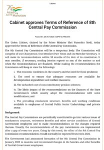 তবে আজ বৈঠকে যেমনটা জানানো হয়েছে, অষ্টম বেতন কমিশনের সুপারিশ তৈরিতে মূলত কয়েকটি বিষয়কে গুরুত্ব দেওয়া হবে। আর সেগুলি হল—