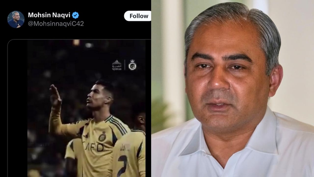 সম্প্রতি এশিয়া কাপের ভারত বনাম পাকিস্তান ম্যাচে সাফল্য উদযাপন করতে গিয়ে ইশারায় যুদ্ধবিমান ভেঙে পড়ার ইঙ্গিত দেন পাক পেসার রউফ। শুধু তাই নয়, এরপর হাতের ছয় আঙুল দেখিয়ে বোঝানোর চেষ্টা করেন, পাকিস্তান যে দাবি করেছে অর্থাৎ পাক সেনাবাহিনী ভারতের ছয়টি যুদ্ধবিমান ভূপতিত করেছে! এবার কার্যত সেই কর্মকাণ্ডের সমর্থনেই সোশ্যাল মিডিয়ায় পর্তুগালের নায়ক ফুটবলার ক্রিস্টিয়ানো রোনাল্ডোর একটি সেলিব্রেশনের ছবি শেয়ার করেন পাকিস্তান ক্রিকেট বোর্ডের প্রধান নকভি।