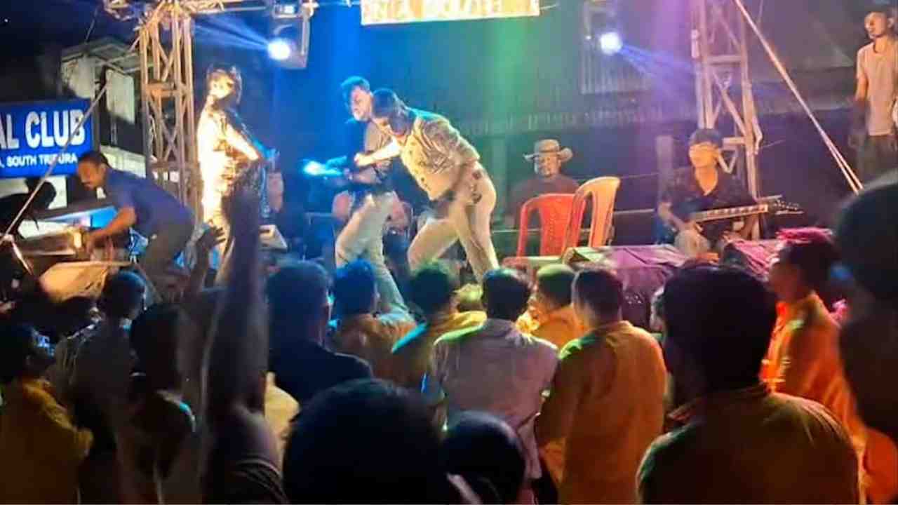 সহেলি মিত্র, কলকাতাঃ কালীপুজোর শোভাযাত্রাকে কেন্দ্র করে ধুন্ধুমার পরিস্থিতি তৈরি হল ত্রিপুরার বিলোনিয়ায় (Tripura Belonia)। থানার ওসিকে রাস্তায় ফেলে কিল, ঘুষি, চর মারা সহ কিছুই বাদ থাকেনি। ইতিমধ্যেই এই ঘটনার ভিডিও সামাজিক মাধ্যমে বিদ্যুতের গতিতে ভাইরাল হচ্ছে। ত্রিপুরায় বিসর্জনের শোভাযাত্রায় সাউন্ড বক্স বন্ধ করায় ওসিকে বেধড়ক মারধর করা হয় বলে অভিযোগ। অভিযোগের তির পুজো উদ্যোক্তাদের বিরুদ্ধে।
