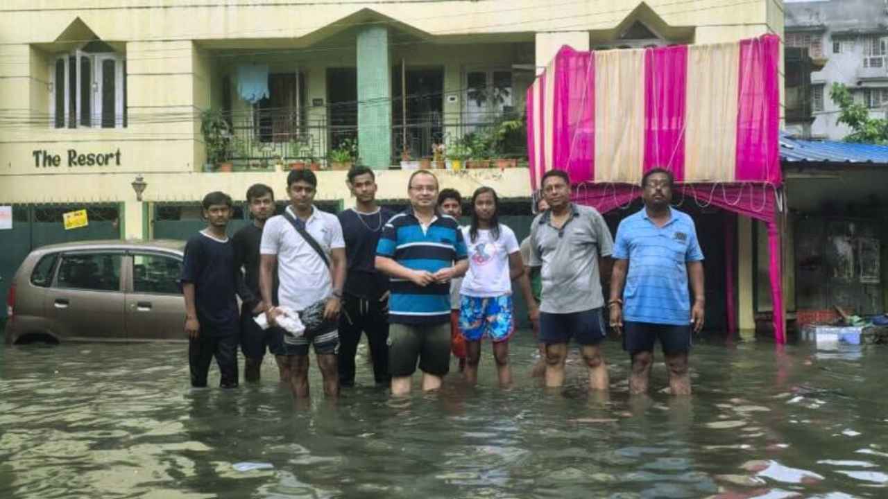 তৃণমূলের মুখপাত্র কুণাল ঘোষের ক্লাব রামমোহন সম্মিলনীর এবারের থিম ছিল ‘গয়না বড়ি’। তাই দিয়েই হয়েছিল মণ্ডপসজ্জা। খাস মেদিনীপুর থেকে নিয়ে আসা হয়েছিল শিল্পীদের। কিন্তু ভারী বৃষ্টির জেরে মণ্ডপের অবস্থা অত্যন্ত খারাপ। এমতাবস্থায় শিল্পীদের পাশে দাঁড়িয়েছেন কুণাল-সহ এলাকার মানুষ। শিল্পীদের থাকা-খাওয়ার চূড়ান্ত সমস্যামোকাবিলা করতে সকাল থেকে রাস্তার হাঁটু জলে নেমে পরিস্থিতির তদারক করছেন কুণাল। সঙ্গে রয়েছেন ক্লাবের অন্যান্য সদস্যরাও। এলাকার বাড়িতে বাড়িতে বেশি করে রান্না করা হচ্ছে খিচুড়ি। তাই দেওয়া হচ্ছে শিল্পীদের। একই সঙ্গে তাঁদের থাকার ব্যবস্থা করা হচ্ছে। নিজের পাড়া ছাড়াও আশপাশের পুজোমণ্ডপগুলিও হাঁটু জল পেরিয়ে গিয়ে দেখে এসেছেন কুণাল। খবর নিয়েছেন নিচু বাড়িতে একতলায় থাকা মানুষের সমস্যার বিষয় নিয়ে। আর এই অবস্থায় বিরোধীদের কটাক্ষকে দুষলেন কুনাল।