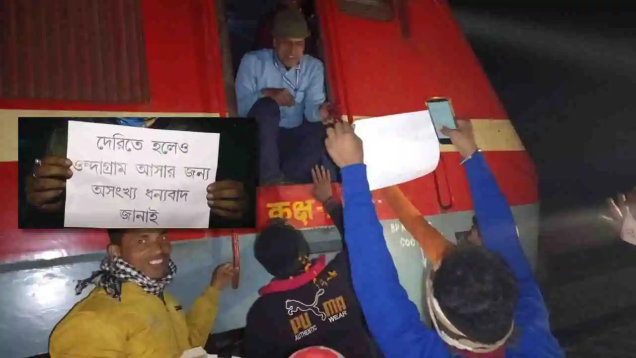 ট্রেন দেরিতে ঢুকলেও চালককে ফুল-মিষ্টি দিয়ে স্বাগত জানালেন যাত্রীরা